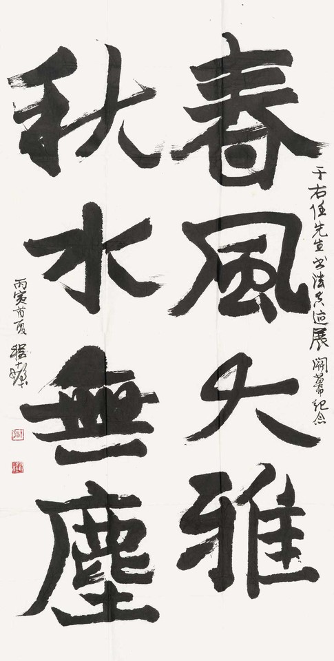 程十发 丙寅(1986年)作 行书贺于右任书法展 镜心