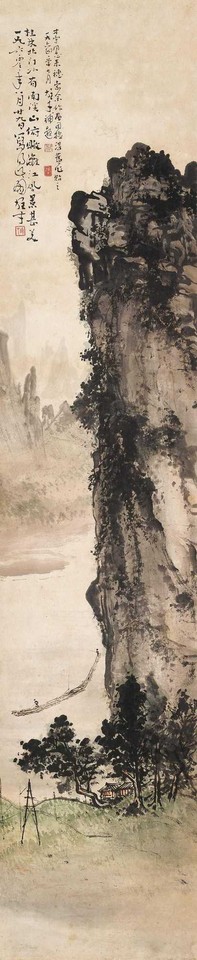 (一)桂林北门外有南溪山,俯瞰漓江风景甚美。一九六零年八月廿九日写得此图,雄才。