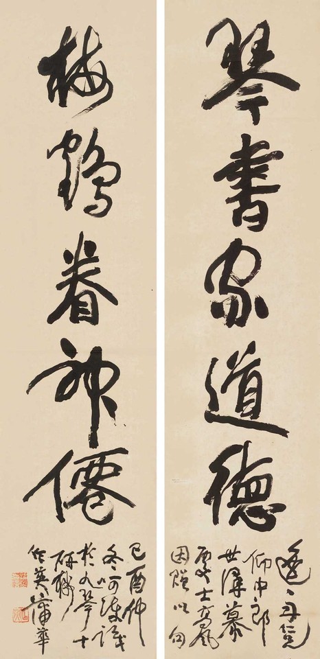蒲华 己酉(1909年)作 草书五言联 立轴