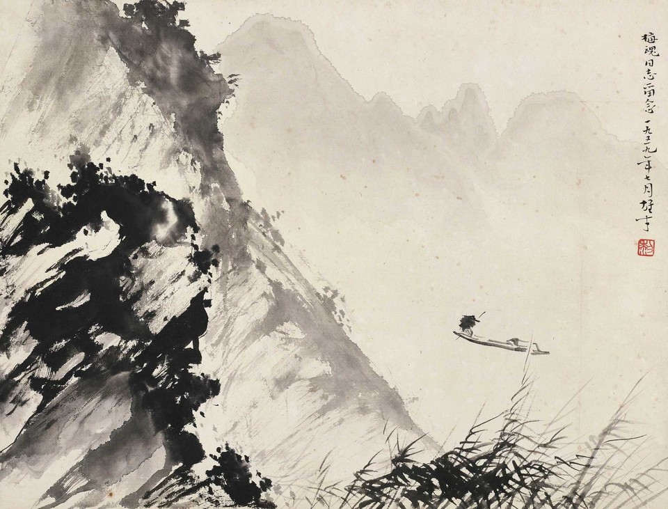 上款:“梅魂同志”即吉梅文(1926-2016)字梅魂,江苏南京人。早年毕业于中央大学艺术系,师从傅抱石、陈之佛等名师,1950年中央美术学院研究生毕业。历任中南文艺学院美术系讲师、广州美术学院副教授、教授,同关山月、黎雄才交往密切。