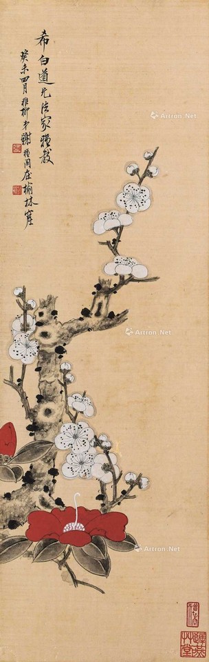 谢稚柳 癸未(1943年)作 为容庚绘《仿陈洪绶山茶图》 镜心