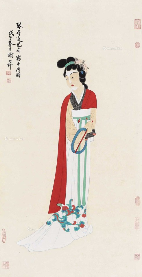 谢稚柳 1948年作 簪花仕女 镜片