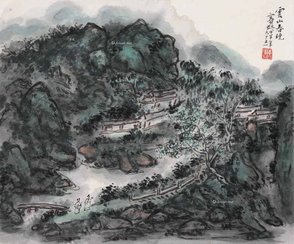 题识:云山春晓。宾虹,甲午年,九十又一。