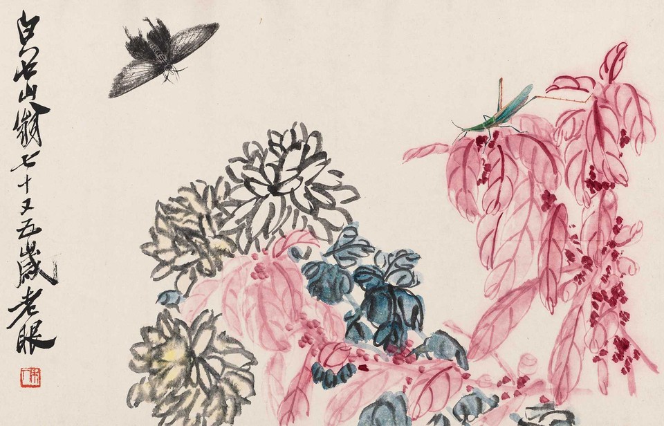 在自由写意风格发展的同时,齐白石的工笔草虫绘画也不断进步,成为当时首屈一指的草虫绘画大师。他在这些年内所画的草虫画有许多翻印成精美画册。这些画册在风格上承袭了于1920年出现的草虫册。画中的蚱蜢、螳螂、苍蝇、蜜蜂、蜻蜓、蜉蝣、飞蛾以及蝉