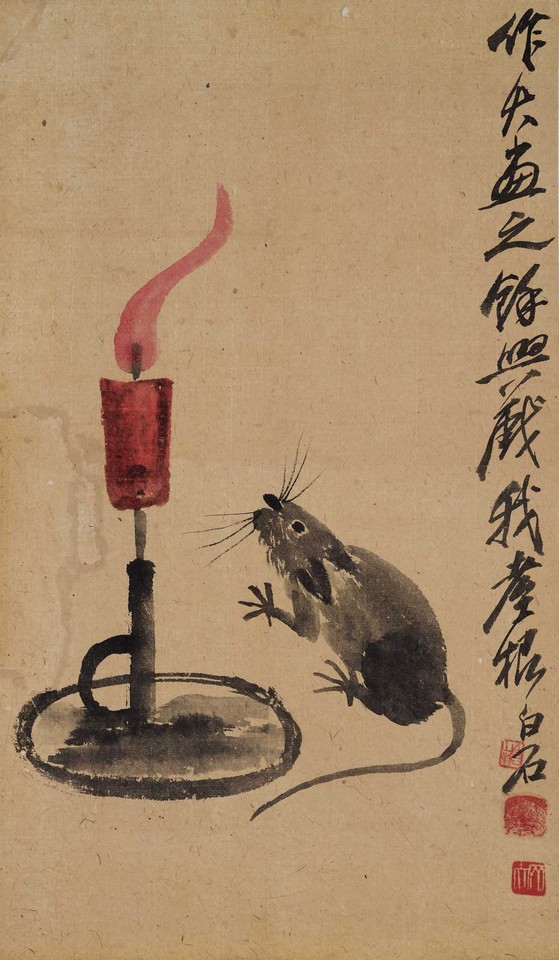 2.本幅题识「作大画之余,兴戏我耋根。」表明这是为其七子齐良末所画。字里行间流露出晚年得子的喜悦与舐犊情深。这种带有强烈个人情感色彩的作品在齐白石艺术中极为珍贵。