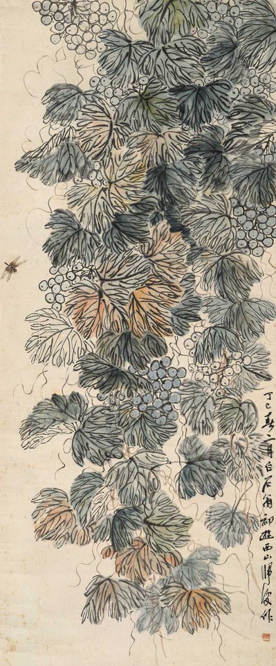 齐白石 1917年作 葡萄蜻蜓 立轴