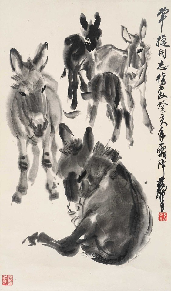 黄胄 1983年作 赠「常捷」五驴图 立轴