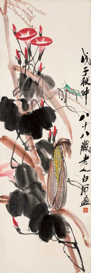 【题识】戊子秋仲,八十八岁老人白石画。