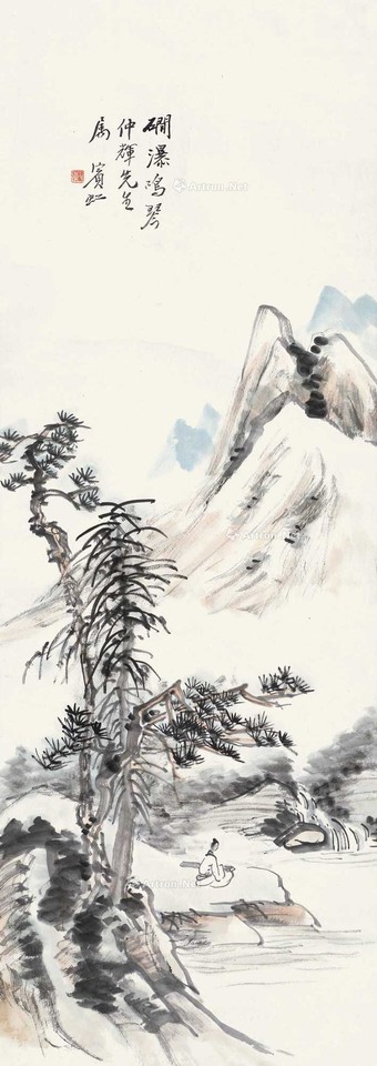 款识:涧瀑鸣琴。仲辉先生属。宾虹。